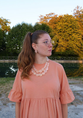 Voici une autre robe que j'ai achetée pendant ma grossesse : oversized, couleur pêche et ultra confortable, elle a rempli son rôle à merveille, j'étais bien dedans comme dans un pyjama douillet.